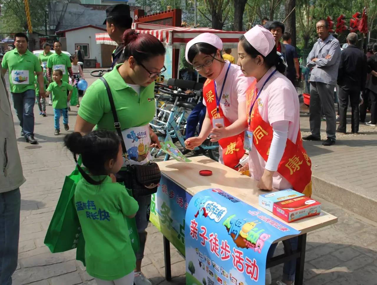 工作組現(xiàn)場簽到并發(fā)放親子裝