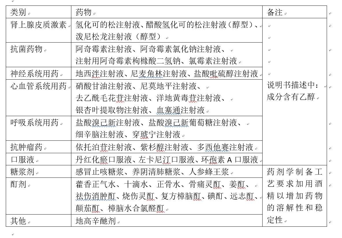 表1、可以導致雙硫侖反應的******